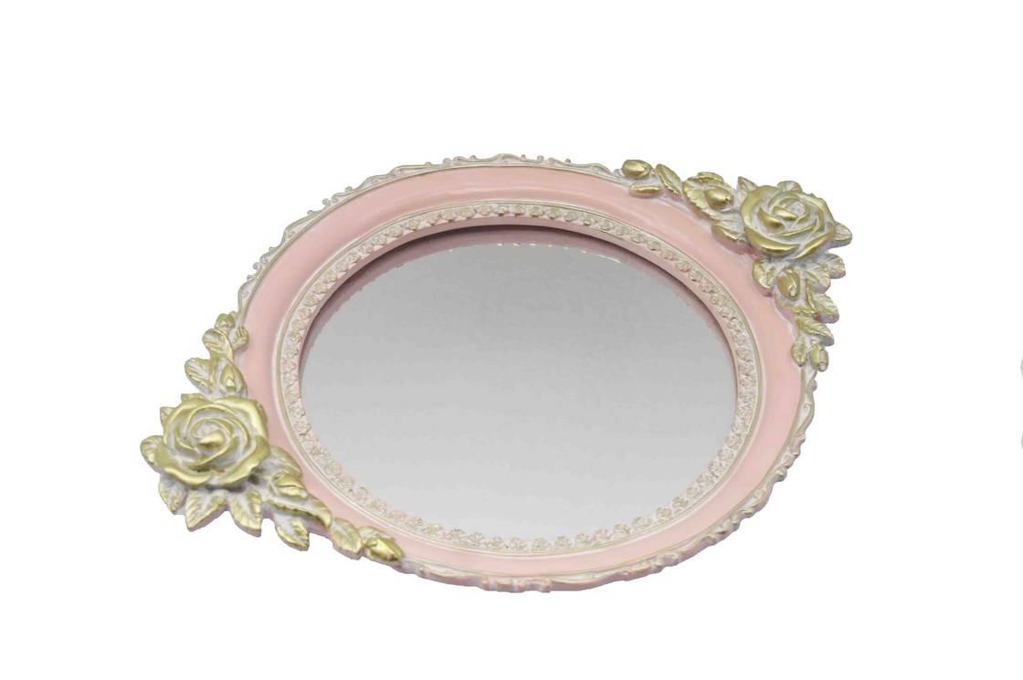 | Description: | Washed White Round Mirrored Vanity Tray Shabby Chic Pink Floral Wedding plate |