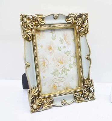 Antique old champagne gold polyresin photo frame, classic baroque crown pattern adorned four corner of the frame. Fine workmanship, match your antique furniture perfectly.