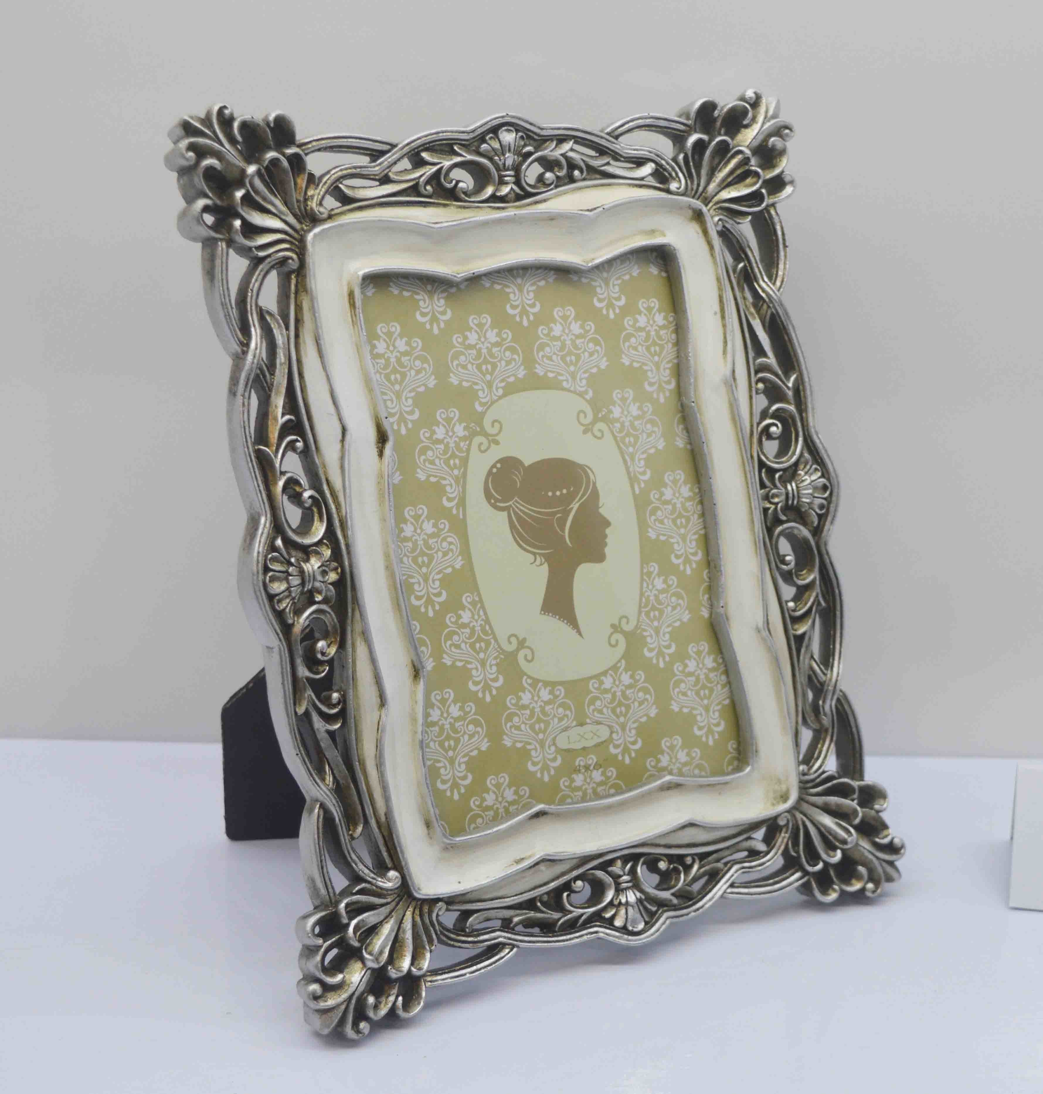 Antique old champagne gold polyresin photo frame, classic baroque crown pattern adorned four corner of the frame. Fine workmanship, match your antique furniture perfectly.
