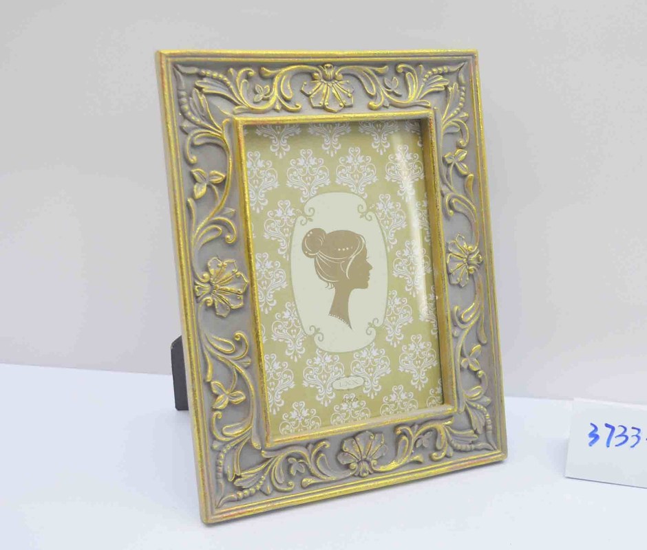 Antique old champagne gold polyresin photo frame, classic baroque crown pattern adorned four corner of the frame. Fine workmanship, match your antique furniture perfectly.