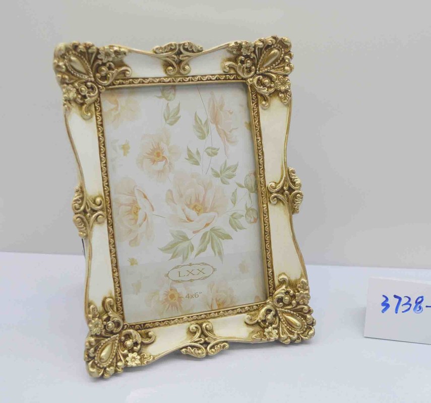 Antique old champagne gold polyresin photo frame, classic baroque crown pattern adorned four corner of the frame. Fine workmanship, match your antique furniture perfectly.