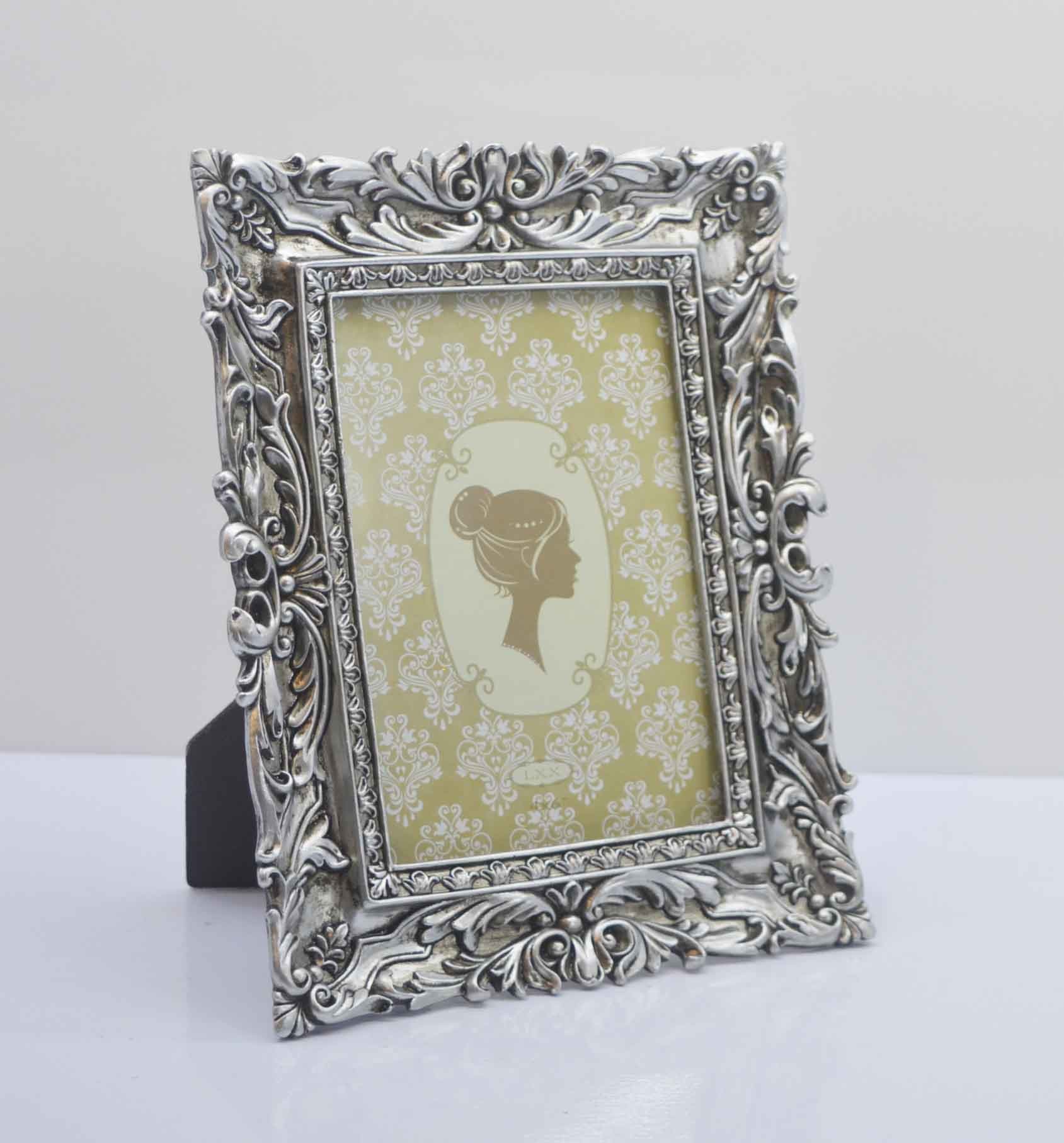Antique old champagne gold polyresin photo frame, classic baroque crown pattern adorned four corner of the frame. Fine workmanship, match your antique furniture perfectly.